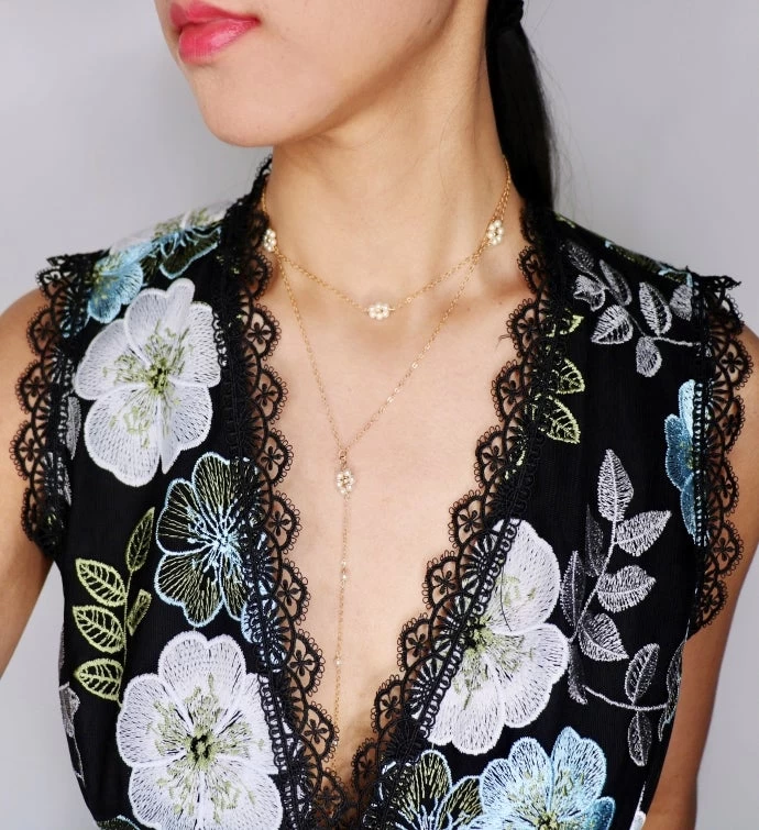 Elegant 14K gold filled choker featuring three handmade daisies.