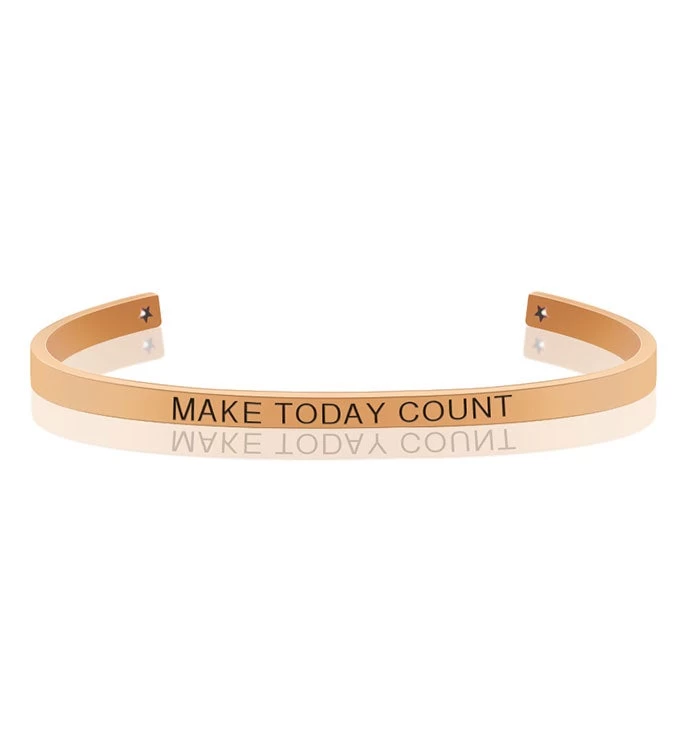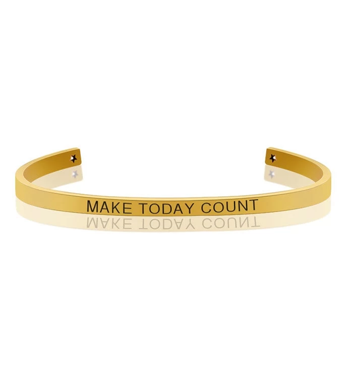 Style your hand with beautiful stainless steel stackable cuff bangles. The bangle comes high polished, star cut out at both ends, and laser engraved with a motivational quote. Worried about the size? Don’t! Bangles can be stretched and adjusted to fit any size wrist.