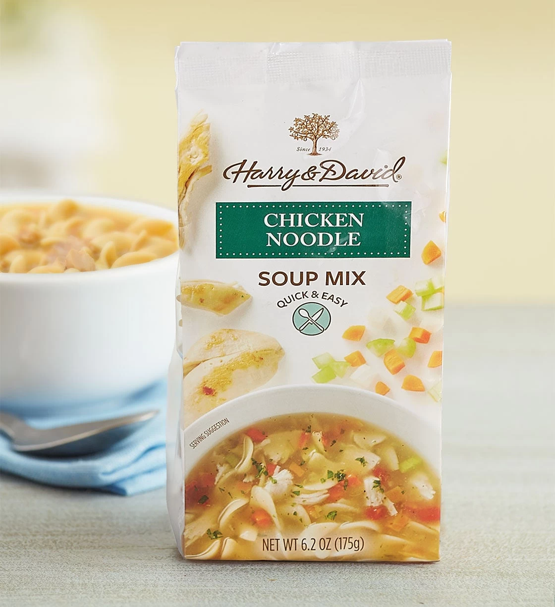 - Harry & David® Chicken Noodle Soup Mix contains noodle and classic flavor packet; 6 oz.; bowl not included