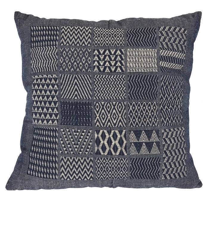 The creation of this design involves spinning and weaving hand-dyed cotton using artisan techniques that have been passed down through generations.