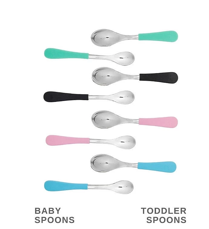 - Moreover, the spoons come with a silicone handle, which transforms them in a safer utensil for eating. This is a useful feature for parents who adopt baby lead weaning. If the kids feed themselves while using this spoon, the chance of injury is visibly reduced. The silicone is free of any substance that may interfere with a healthy meal time.
