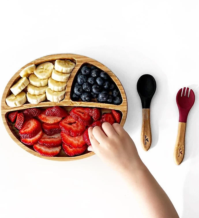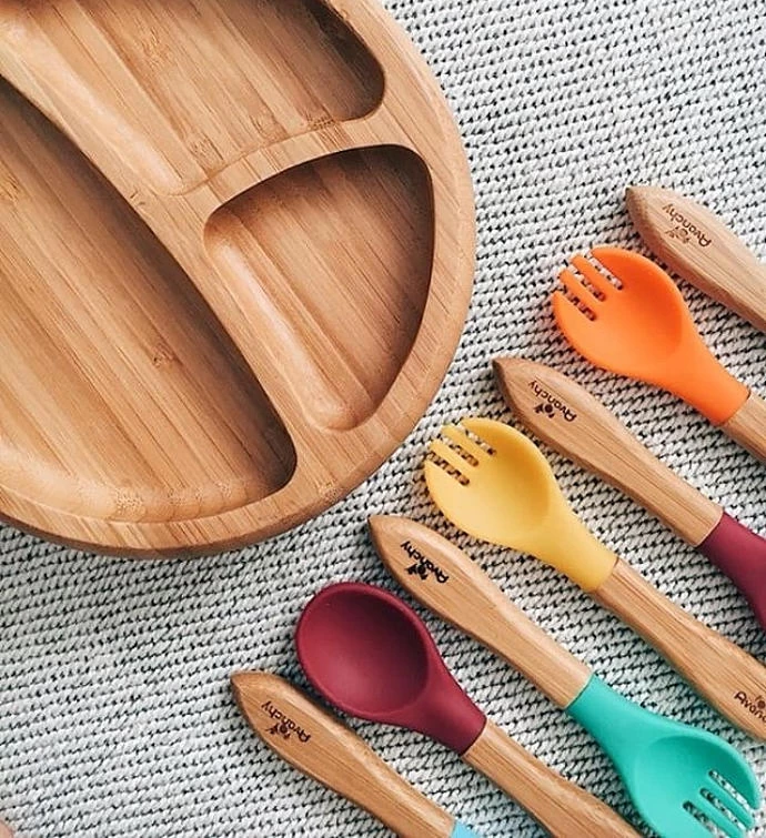 Forks are crafted of organic bamboo and silicone. FDA-approved food-grade varnish.