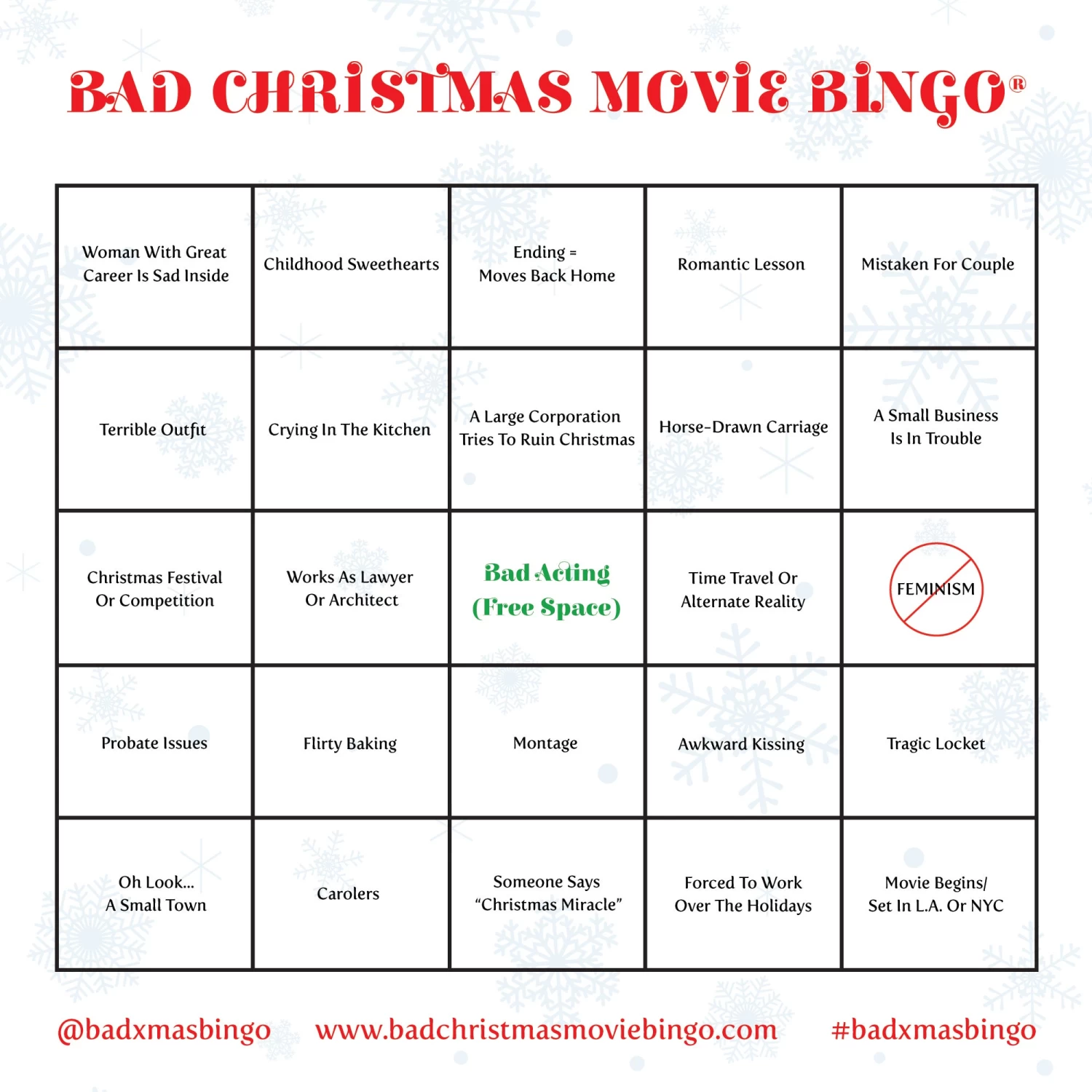 Bad Christmas Movie Bingo® is a board game designed to be played while watching any made-for-TV Christmas movie (Yup, it works with all of them)! There are 150+ unique squares spread across 15 different Bingo boards.