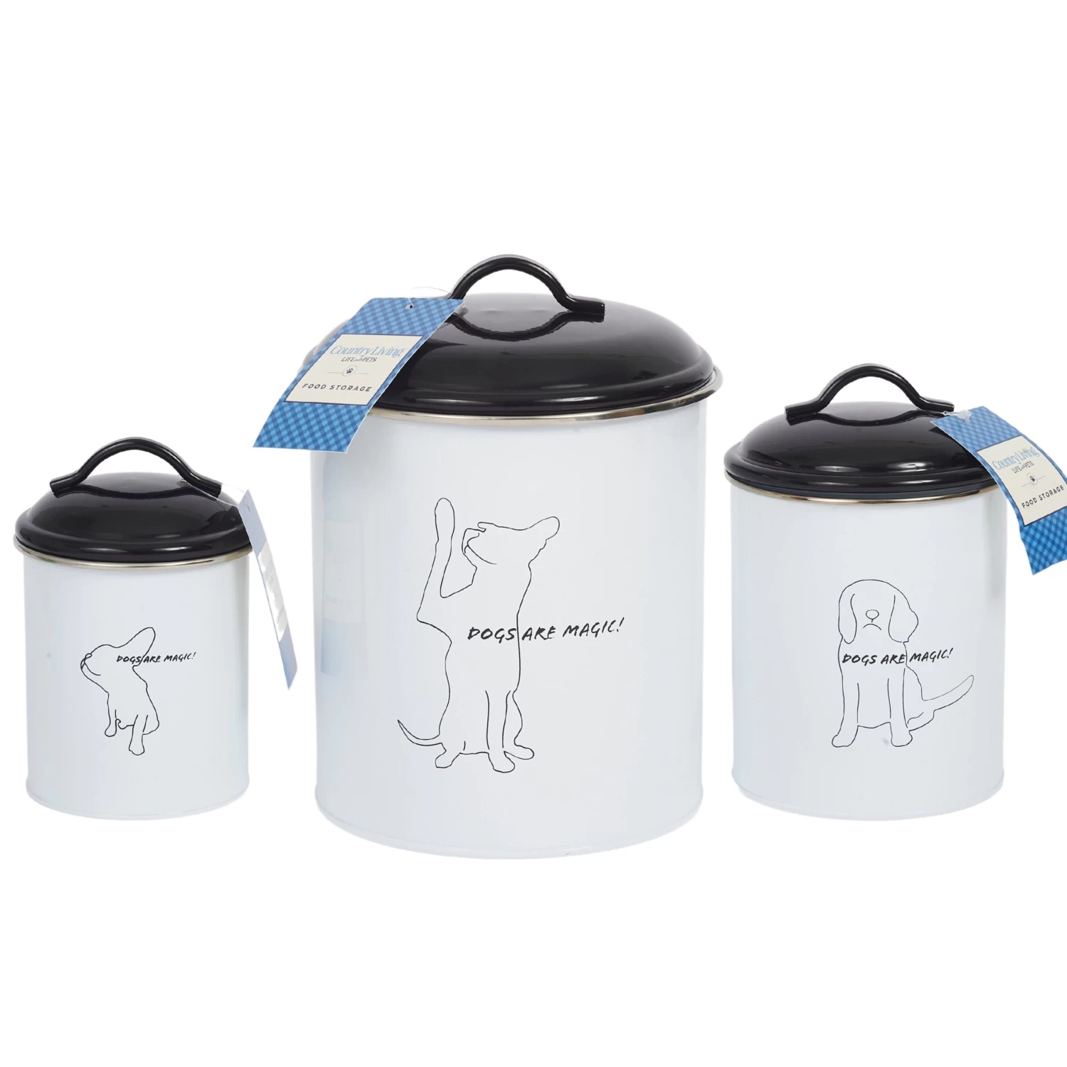 Black & White Pet Food & Treat Storage Canisters (Set of 3)