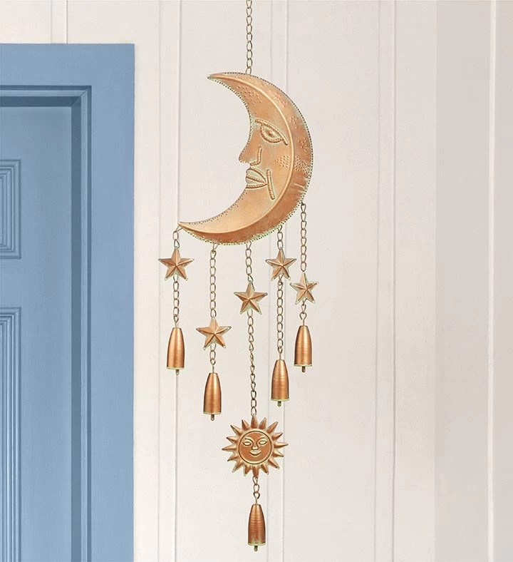 Bring a piece of the heavens home with our celestial windchime. An engraved sun and moon connect with delicate stars and charms, creating a unique gift for any garden or outdoor sanctuary.