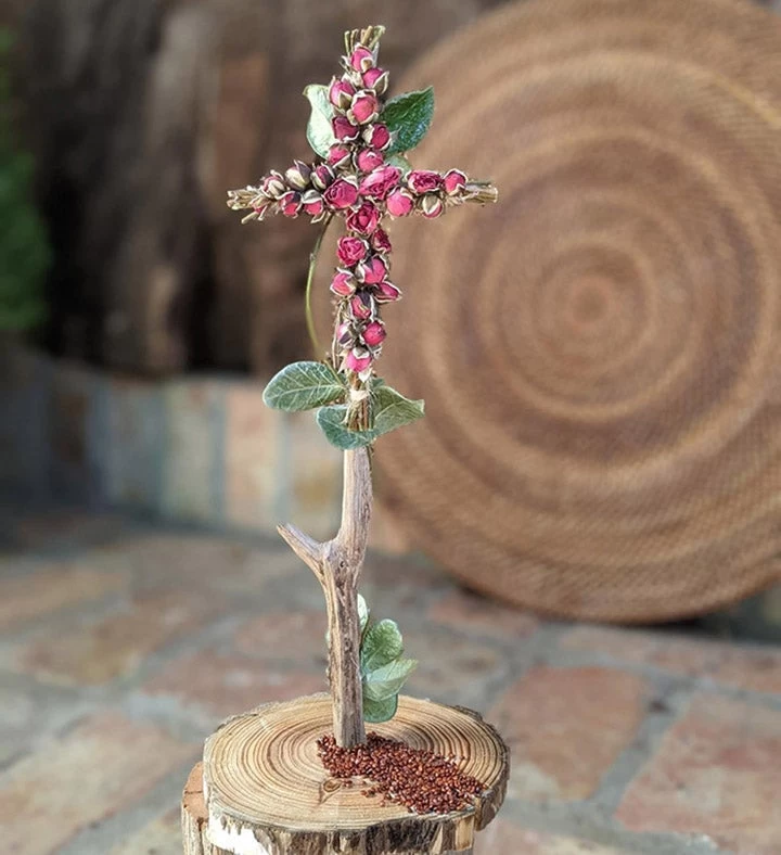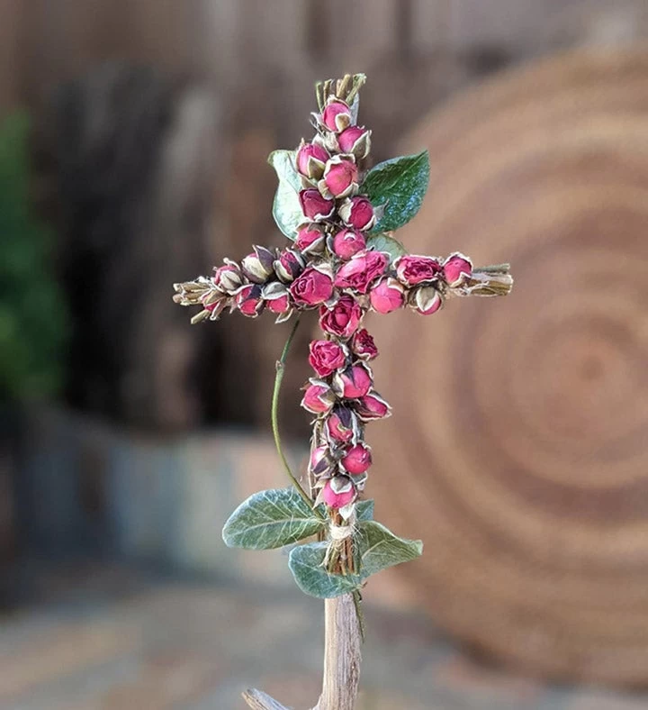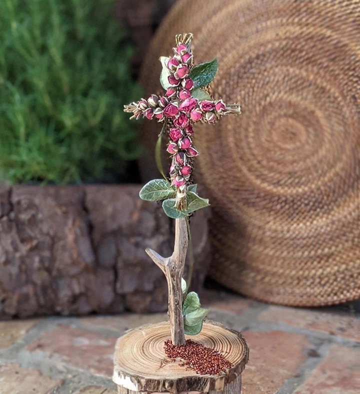 This most unique Christian Centerpiece is handcrafted with only natural materials including driftwood, rose buds, leaves and seed pods. Christmas Gift
