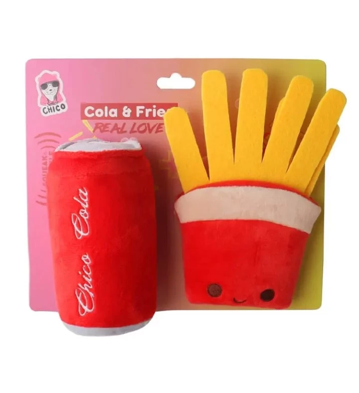 Cola & Fries Crinkle and Squeaky Plush Dog Toy Combo