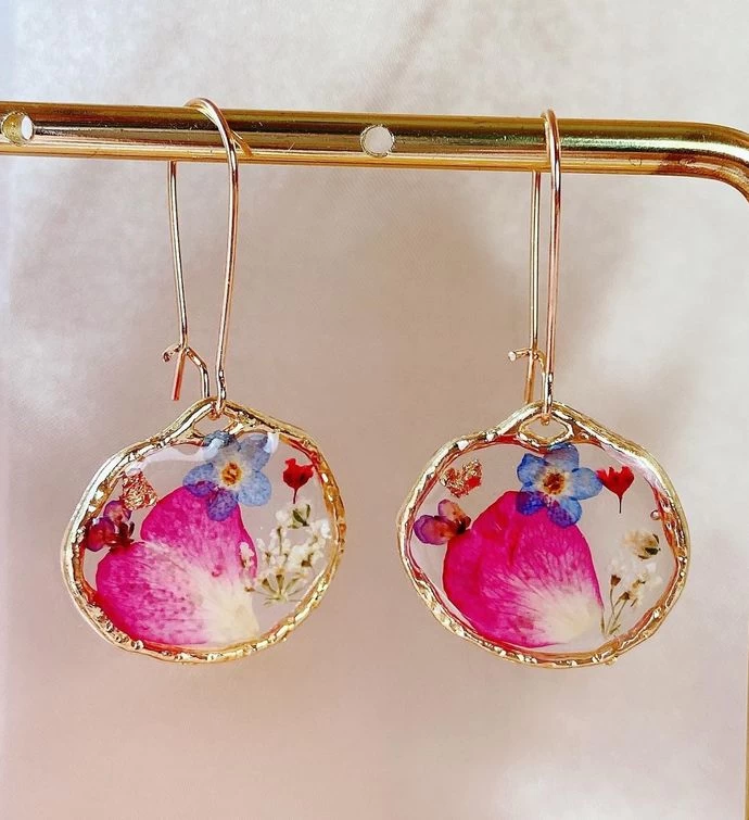 Made with real pressed flower and high quality resin. *Each earring will vary slightly.