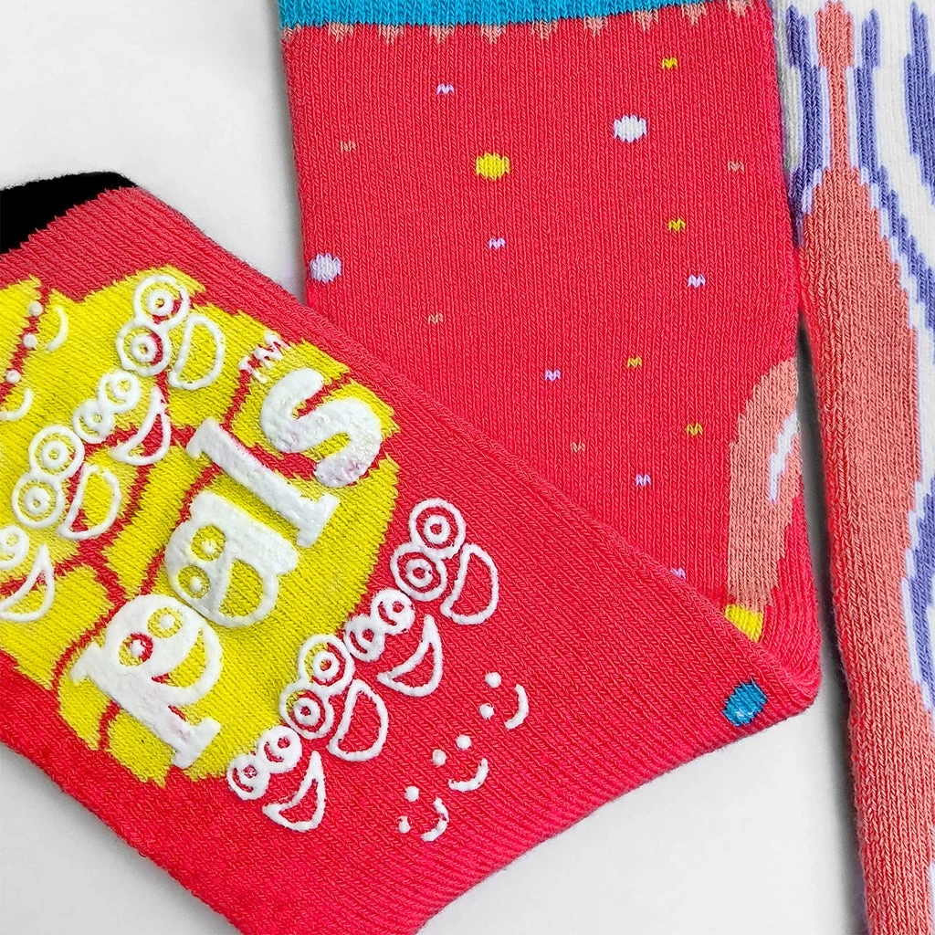 This bright oceanic socks pair comes adorably mismatched as a Crab and a Jellyfish. We don’t have to match to be besties. Let’s be Pals!