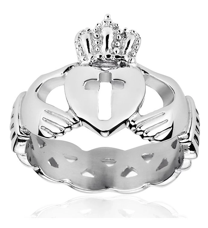 Cut-Out Cross Celtic Knot Band Stainless Steel Claddagh Ring – Size 7