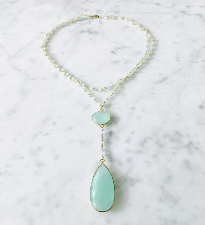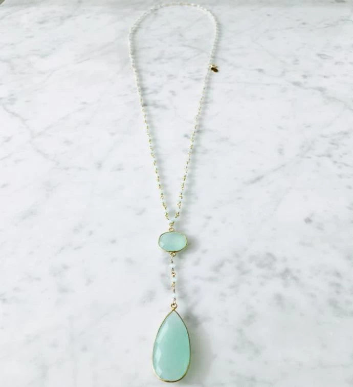Diana Double Denmark Necklace Chalcedony with Chalcedony Drop with Gold / Chalcedony