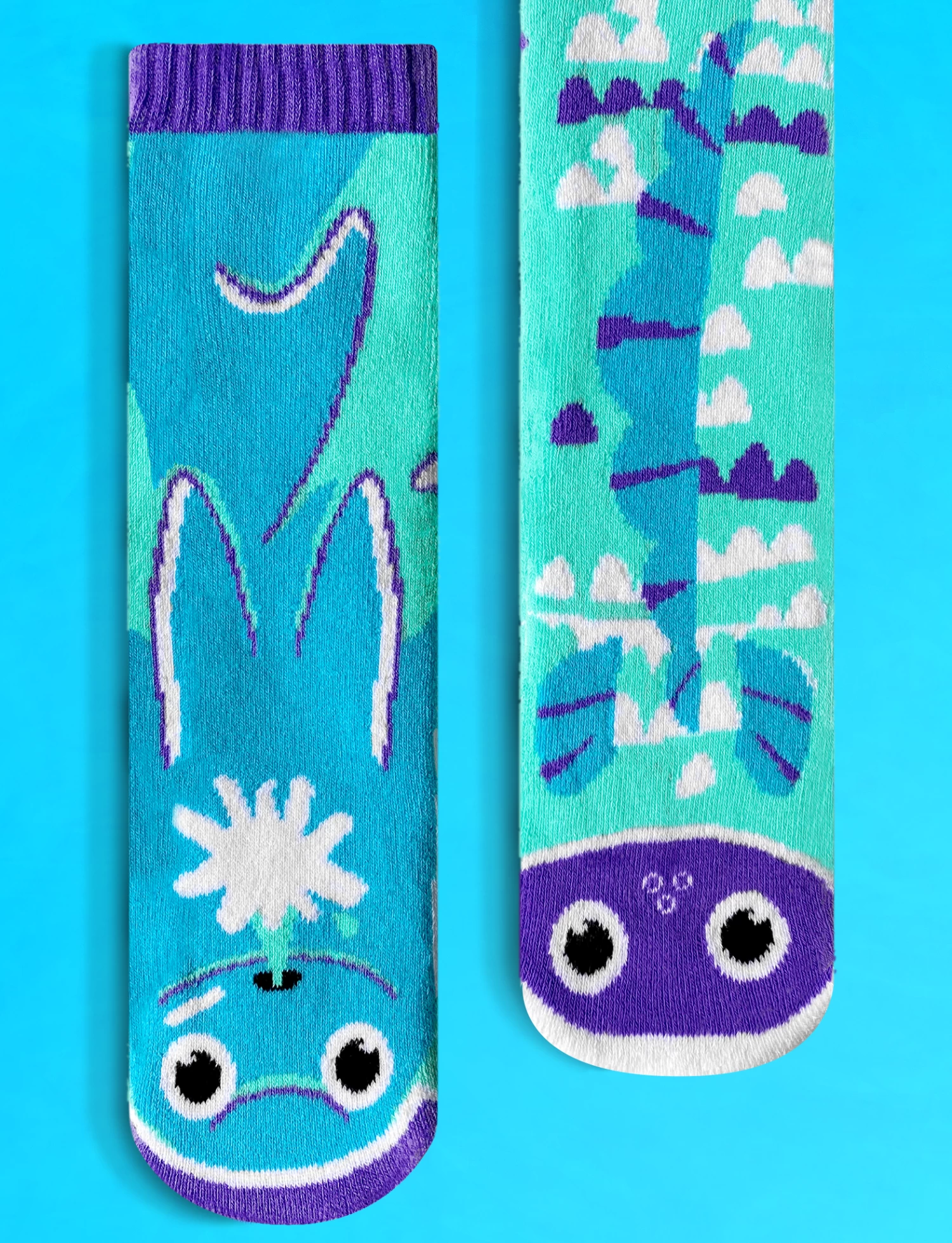 This aquatic socks pair comes adorably mismatched as a Dolphin and a Fish. We don’t have to match to be besties. Let’s be Pals!