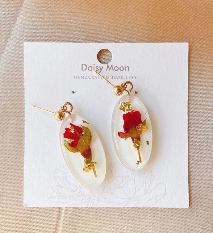 Made with real pressed flowers and high quality resin. Approximate Size: 1.5 inch. Hypoallergenic post/hook. The colors for each piece will be slightly different as they are real botanicals.