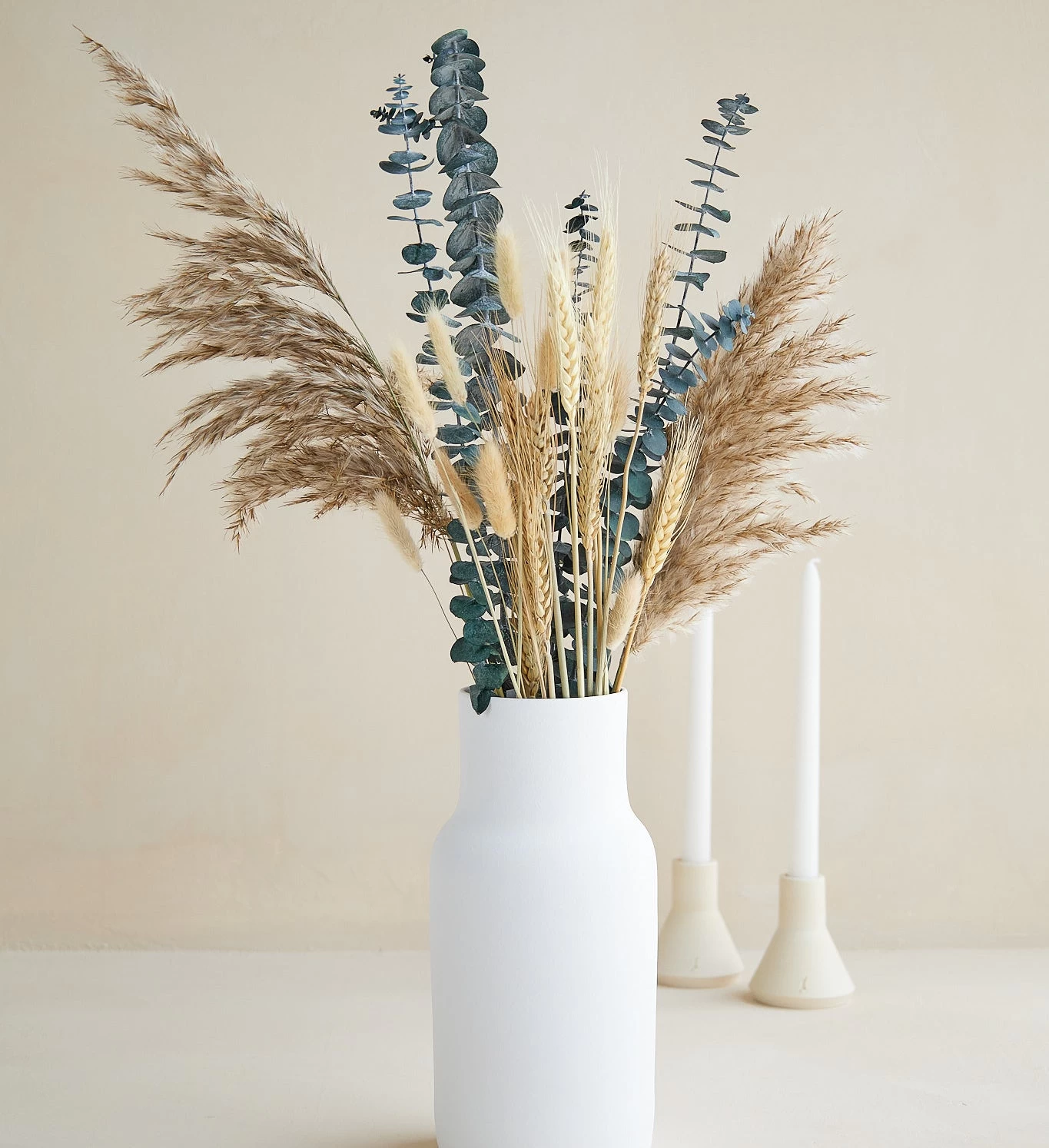 A perfect gift to someone you love – everlasting dried flower set with eucalyptus, pampas grass, bunny tails, and dried wheat that can be arranged in the vase to their liking. Unlike fresh flowers, dried florals don’t require watering and last for years.