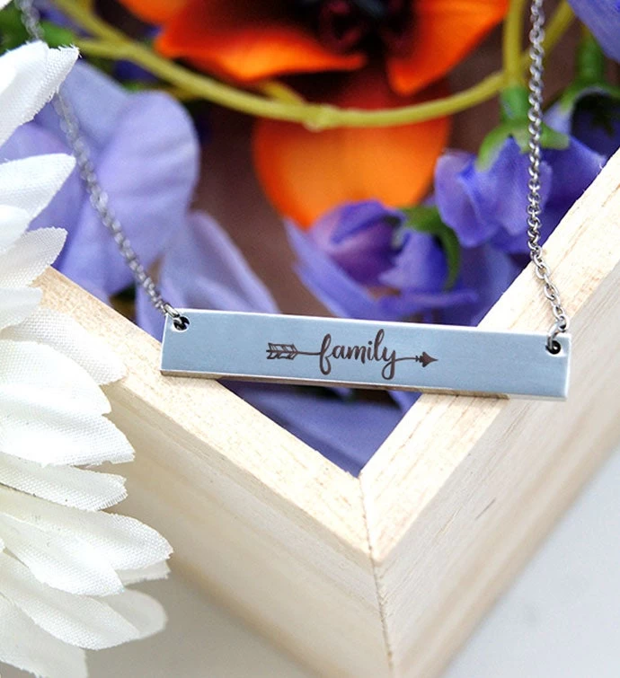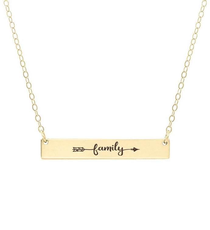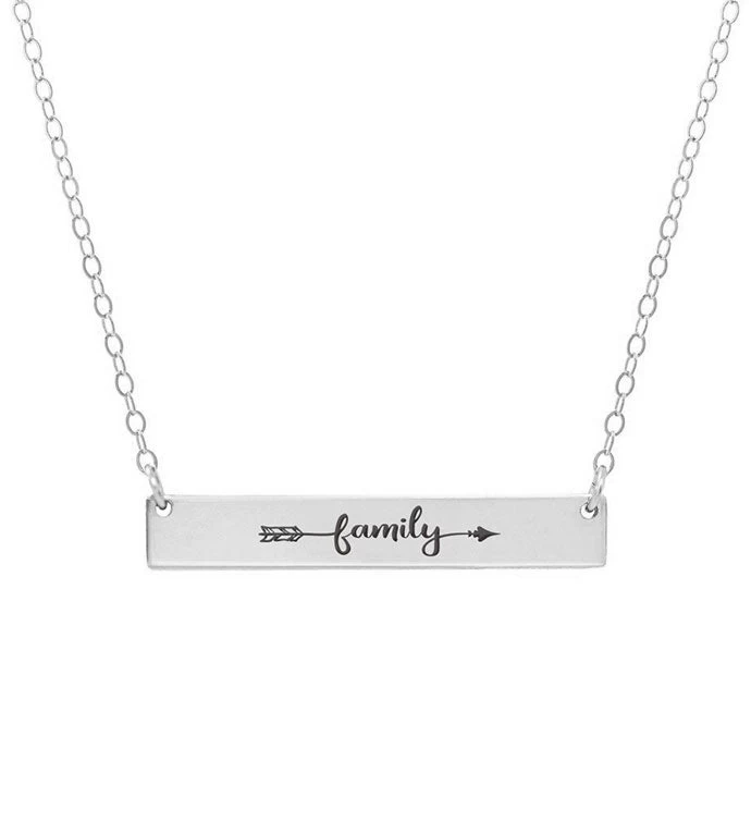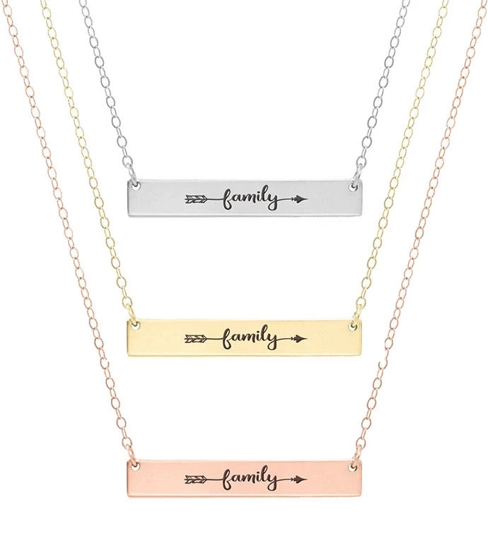 Turn heads with the classic polished bar necklace. The bar necklace comes engraved on the front only. Perfect necklace for casual wear to make your look pop!