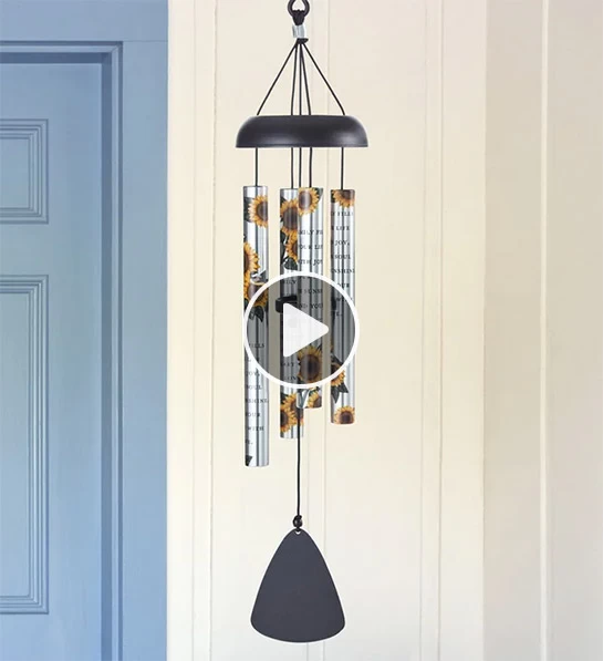 - Aluminum windchime features sunflower graphic and the sentiment, “Family fills your life with joy, your soul with sunshine and your heart with love.”