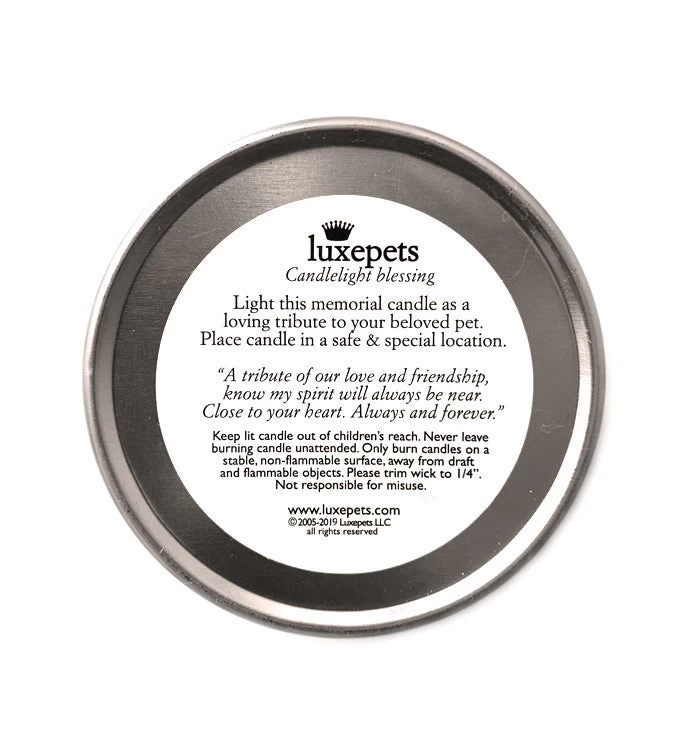 This pet memorial candle is a heartfelt way to say “I am thinking of you” during a very tender time of loss. Lighting a candle can help you or a loved one to begin to fill the hole left in your heart by the loss of your beloved companion.