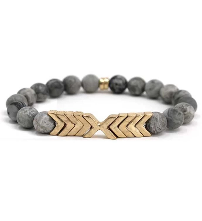 | Pick Your Item | Gold Ball Gray Soap Stone Chevron Stretch Bracelet |