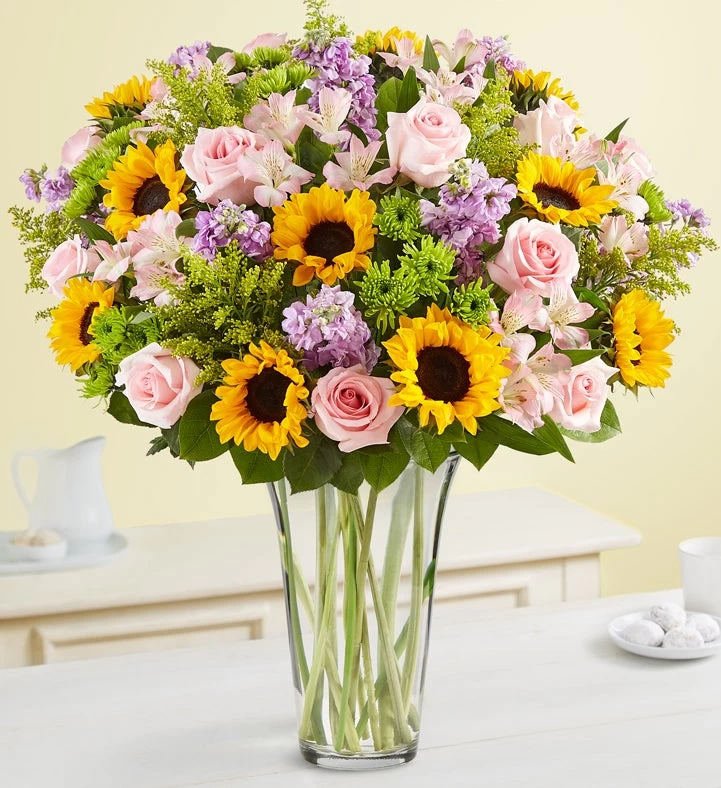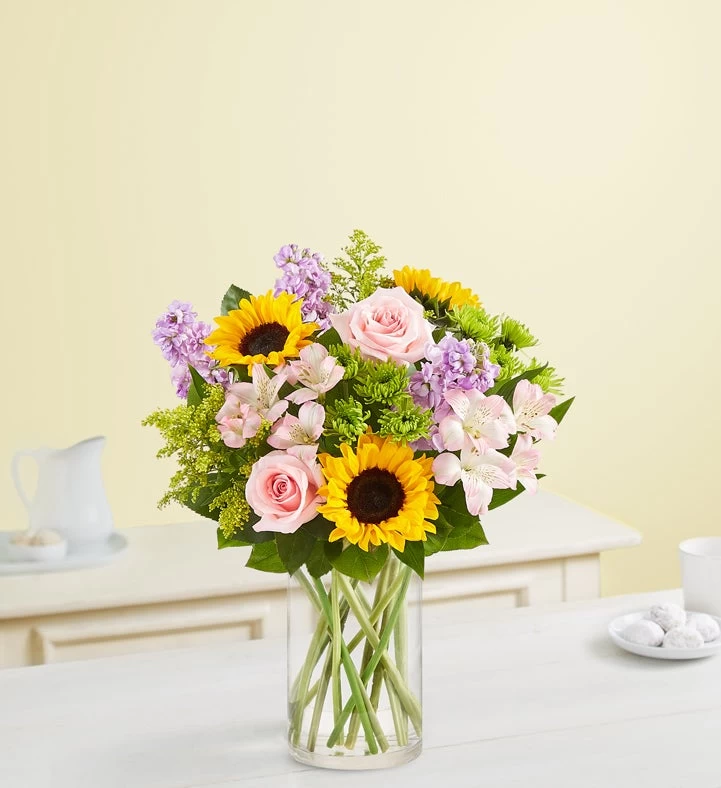 Our best-selling spring bouquet is inspired by the traditional, hand-tied arrangements found in flower markets throughout Europe. Gathered with a mix of vibrant blooms inside a classic glass vase, it brings a cheerful taste of old-world charm to the people you care about.