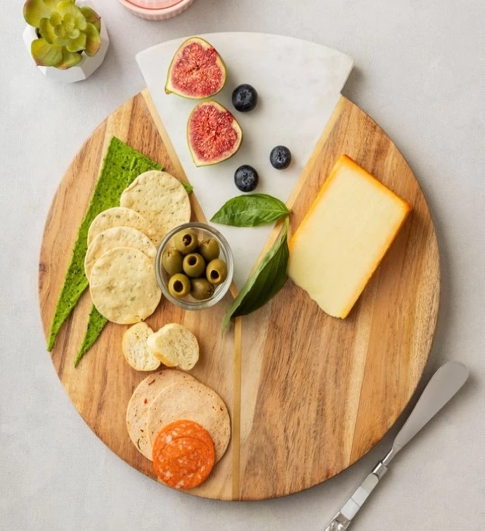 Hand craftsmanship & natural variations in the color, weight and veining of marble & wood, makes each of our cheese cutting board a singular work of art.