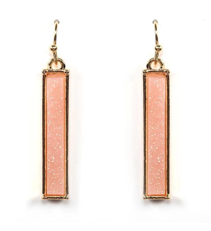 Gold Pink Druzy Bar Earring