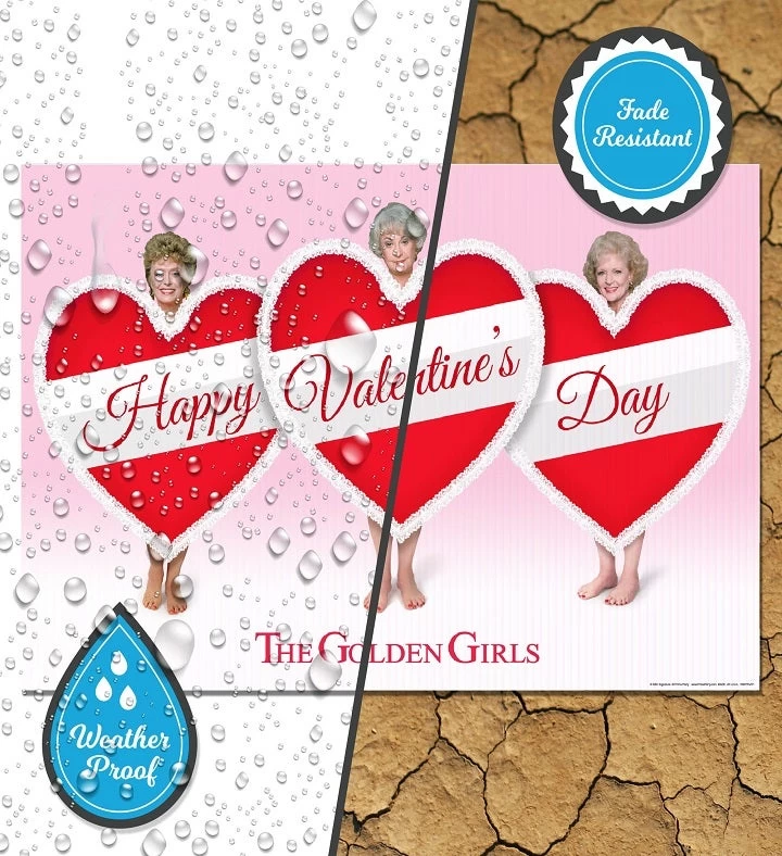 Golden Girls, Happy Valentine’s Day yard sign is a perfect way to celebrate that special Golden Girls Fan in your life while social distancing. Sign measures 15″ Tall x 23″ wide when folded.