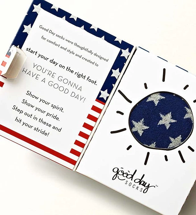 EXCLUSIVE This all-American pair is brimming with pride…and sure to help him hit his stride! Our Good Day socks were thoughtfully designed with the uplifting message, “Gonna Be a Good Day™”, on each toe, bringing an extra hint of happiness and positivity every time they put them on. These fun and festive socks feature an American flag motif and come in a coordinating gift box, making them a truly original gift for patriotic holidays, birthdays or simply to start someone’s day off on the right foot!
