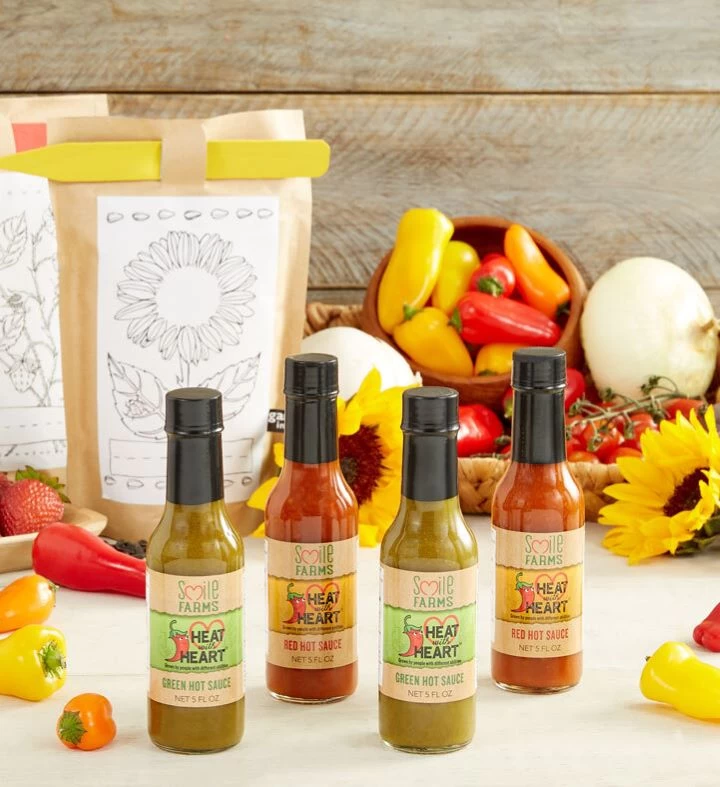 Heat with Heart™ hot sauce is made with peppers grown by Smile Farmers working across several Smile Farms locations in the New York area.