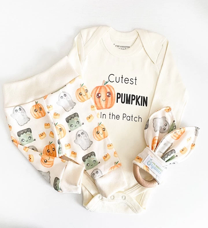 Introducing our spooktacular organic cotton Halloween baby gift set, designed to make your little one the star of the pumpkin patch! The gender-neutral Halloween-themed designs bring a touch of whimsy to the festivities, featuring iconic elements like pumpkins, ghosts, candy corn, and even the lovable Frankenstein monster.