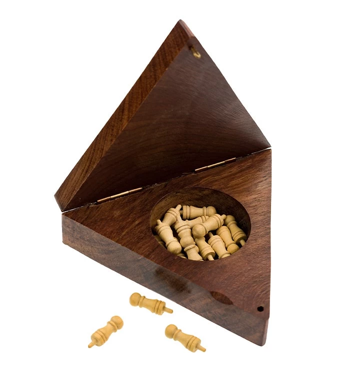 Enjoy playing our Solitaire Peg Board Game made from sustainably sourced haldu wood and Indian rosewood. This is a fun and challenging game for teens and adults alike. Great travel companion.