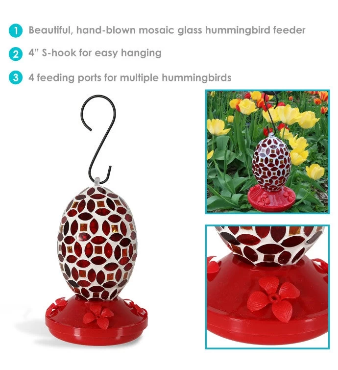 | Pick Your Item | Glass Oval Mosaic Flower Outdoor Hummingbird Feeder – 7 In – Red |