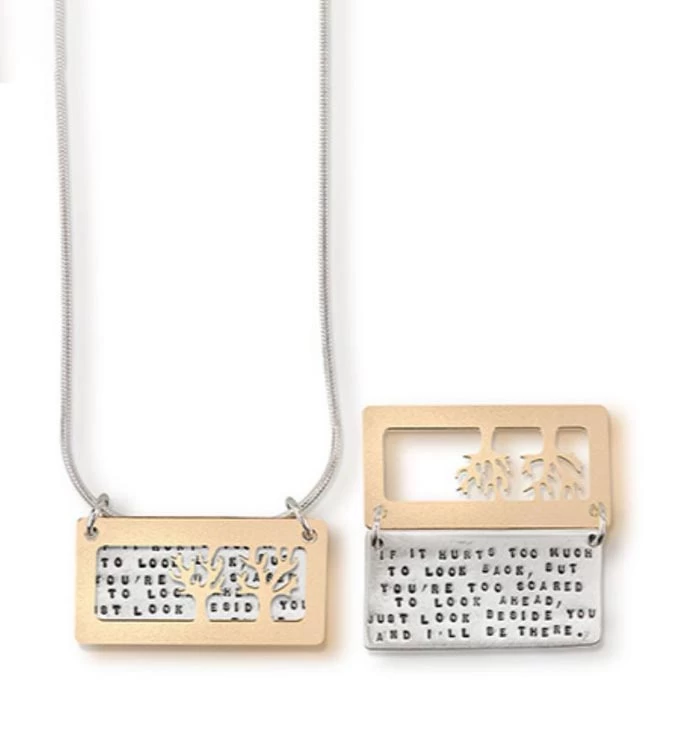 If it hurts too much to look back, but you ‘re too scared to look ahead, just look beside you and I’ll Be There. 18 in. snake chain 1 1/4 x 5/8 in.