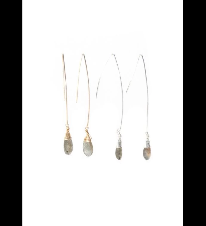 The Jill Wire Drop Earrings in Labradorite, in your choice of 14k gold filled or sterling silver