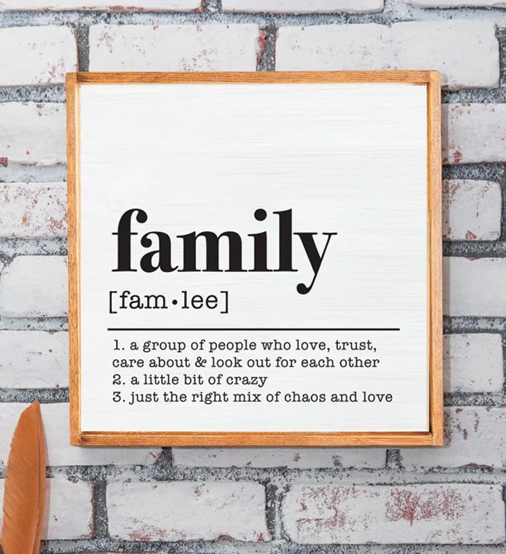 The Family Definition Large Wall Art adds cozy warmth as a wall hanging, shelf or mantel decoration.