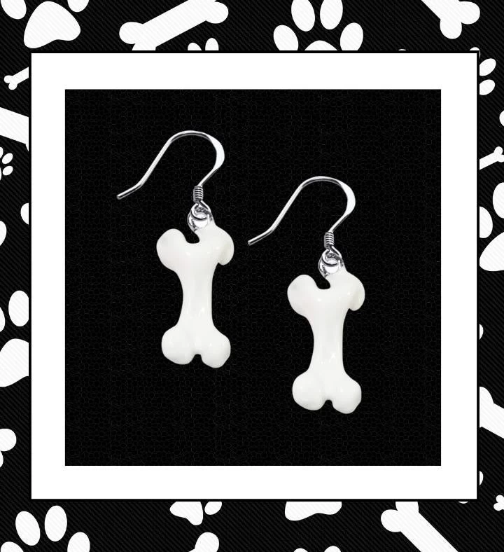 Delightful for dog lovers, groomers, walkers, breeders and archeologists alike, our Bone Charm Earrings measure 20 mm x 9 mm and are manufactured, plated, hand-painted and assembled in the USA.