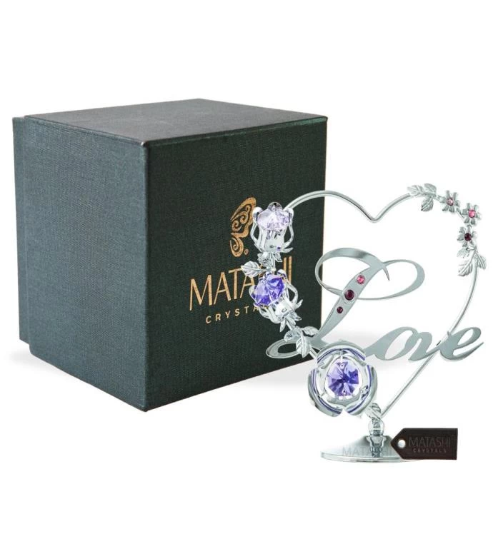 Whether you’re looking to inspire a loved one, remind someone how much you care, or you just want to add beautiful, one-of-a-kind décor to your home, then Matashi has the right keepsake for you. This gorgeous Love piece is placed over an intricately-detailed heart and fitted with flowers along with red, pink, gold, and champagne-colored crystals that perfectly highlight each beautiful curve. A wonderful addition to your living room, bedroom, office, or anywhere else you want to express or remember your love. Get one today and highlight your affection with this stunning piece.