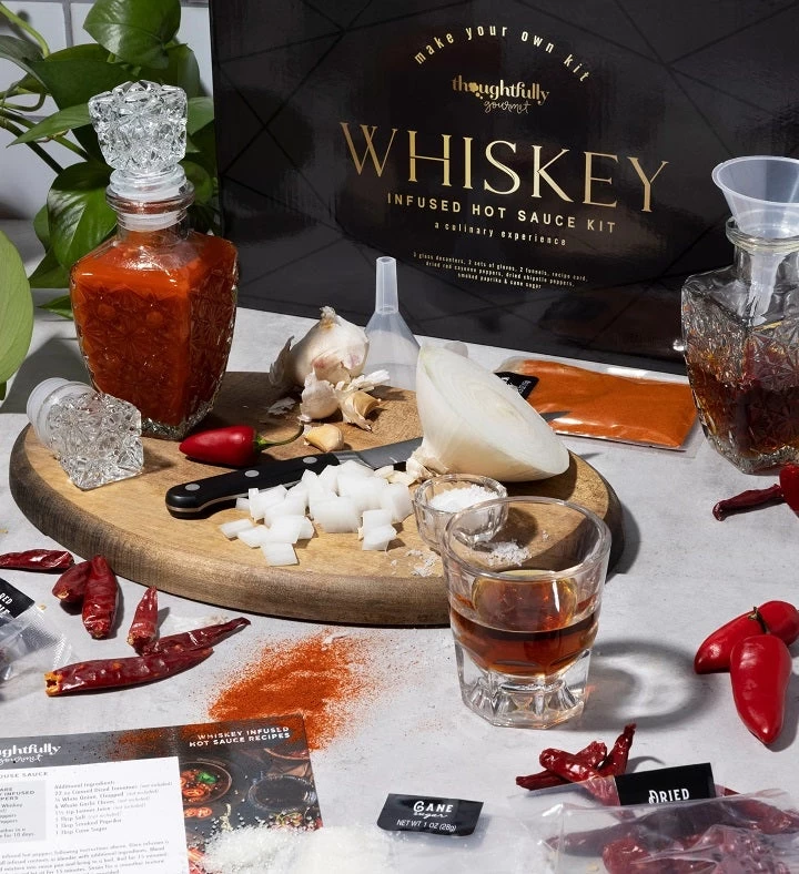 Make your very own completely customizable hot sauce infused with your favorite whiskey (not included). Each hot sauce kit comes with a range of peppers, all-natural ingredients, and tools to get you started and includes a Recipe Card for our two favorite mixes: Sweet House Sauce and New Mexico Hot Sauce. This kit is a perfect gift for hot sauce and whiskey lovers who are looking to get creative in the kitchen. A unique birthday gift idea!