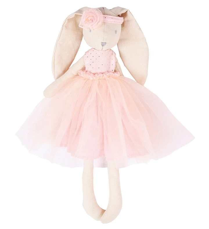 Marcella loves to dance and twirl round and round in her beautiful ballerina dress made with lovely netting in a delicate pink color. She has long rabbit ears and sweet embroidered features.