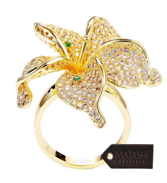 Are you looking for the perfect set of ring to help you finish off that elegant look? Want to dress up your favorite jeans with a little high-class trendy fashion? These Matashi Gold-Plated Flower ring offer beautiful intricate detail that perfectly highlight every look. Crafted with a skin-safe hypoallergenic finish that won’t turn ears green, our gold ring are perfect for dressing up a blouse, adding the perfect touch to your evening gown, or even just for adding a little sass to your day-to-day routine. Get a this ring today for yourself, a friend or a loved one and add a little beautiful, fashionable color and style to your look.