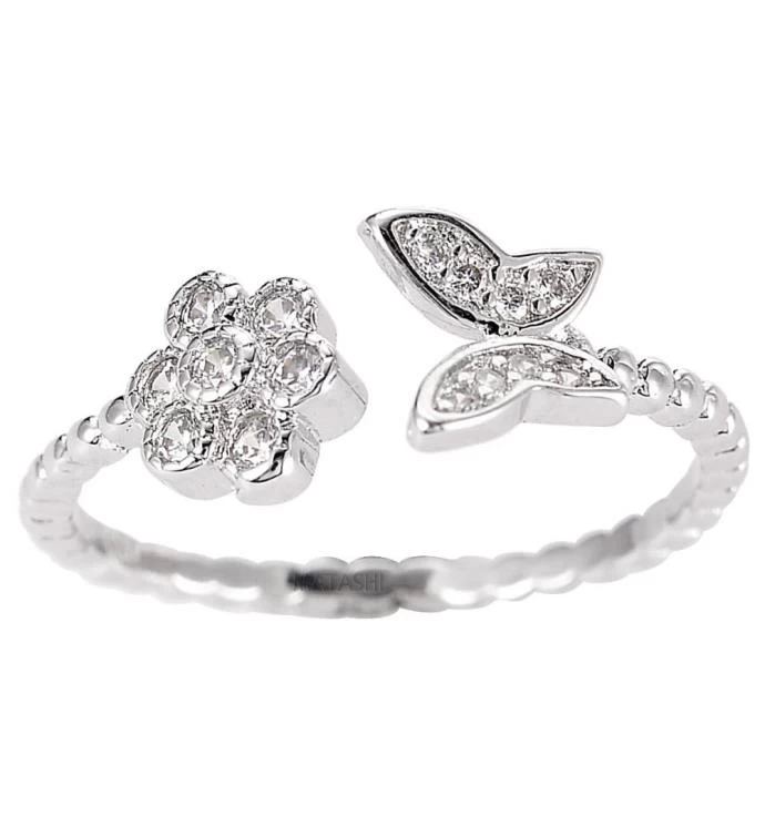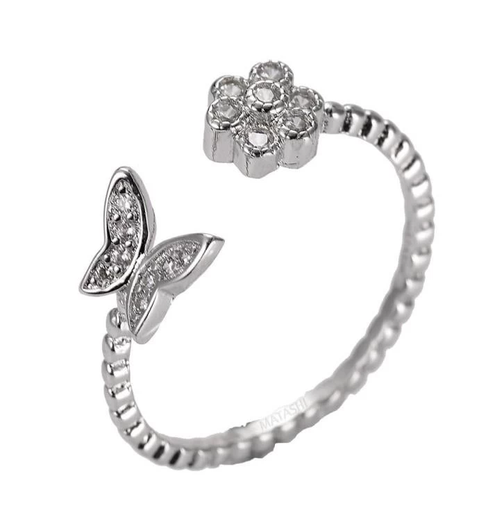 Simple, Gorgeous & Feminine Zircon CZ Flower & Butterfly Ring Treat yourself to some gorgeous and stunning jewelry that is both feminine and cute. Wear it all day, any day to any outfit and make a style statement with this beautiful flower butterfly ring.Polished For Maximum Clarity & Sparkle For Stunningly Gorgeous Look This Cubic Zirconia Open Statement Fashion Rings is made with a combination of Brilliance and Love. This Crystal Flower and Butterfly Ring perfectly complement to any look. Rhodium plating offers a brilliance and sparkle like no other. By utilizing the highest quality materials, tools and advanced processes and techniques, we managed to create a rhodium plated ring that will undoubtedly stand the test of time while adding that unique sparkle and shine to your life! Rhodium plating enhances the overall appearance, making your jewelry shine more and look brighter longer. It is less susceptible to corrosion and damage allowing your favorite pieces of jewelry to last longerWhy Choose This Flower & Butterfly Crystal Zircon Open Rings for Women- The style presents flawless polished accents that compliments anything you’re wearing! – Crafted with Zircon Stones for sparkle and luster -The Rhodium Plating is durable and long lasting, and enhances the overall appearance- Backed by 1-Year Warranty! The Best Gift for Every Occasion: Party Birthday Wedding Christmas Romantic Surprises Graduation Anniversary Mother’s Day Engagement Valentine’s Day * And More!Click on the Add To Cart button to order today and show that special someone in your life just how much you care!
