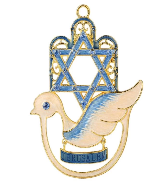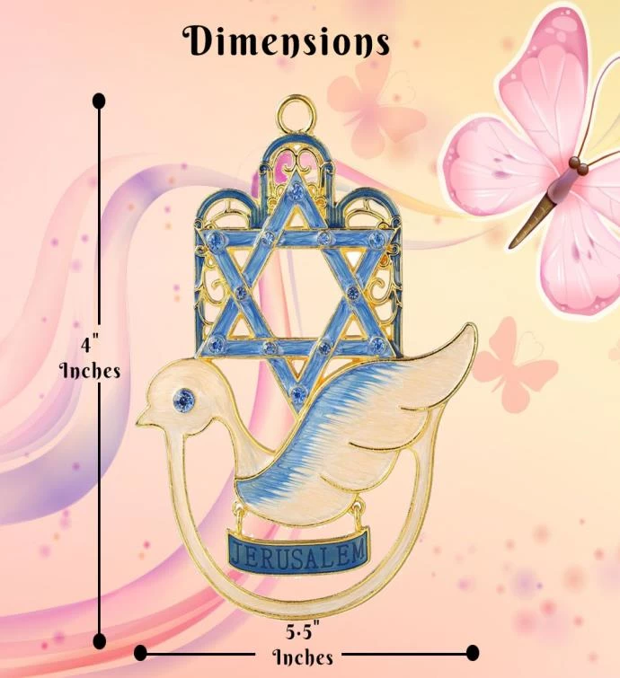 There are few more iconic representations of the art and symbolism of protection and good luck than the kabbalistic Hanging Hamsa. That’s why we crafted this stunning metal decorative piece that features a gorgeous Star of David and dove bird. Complete with a small hanging hoop so you can place it anywhere you’d like to celebrate your faith, love and hope. Get your own Hamsa pendant today and enjoy the elegance!