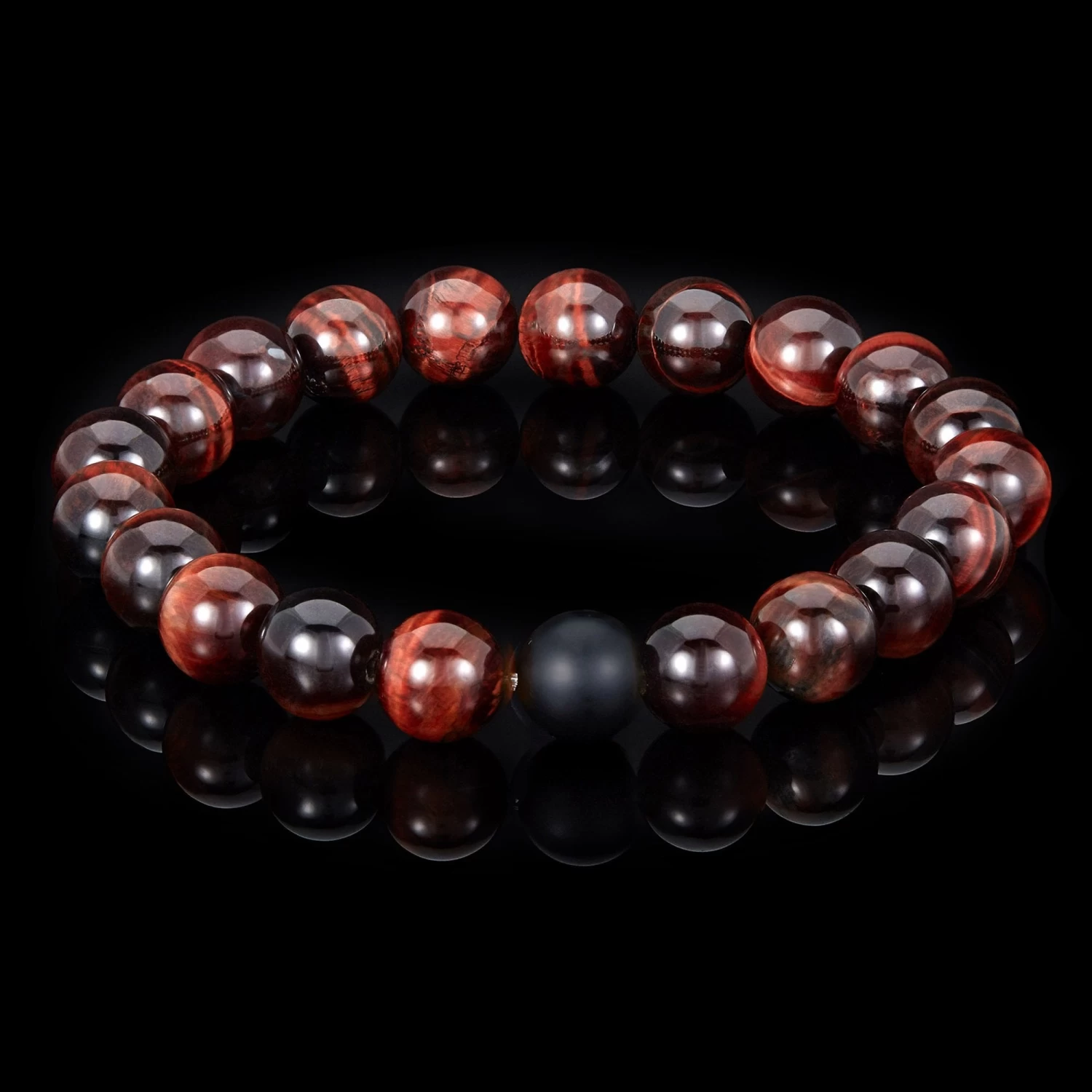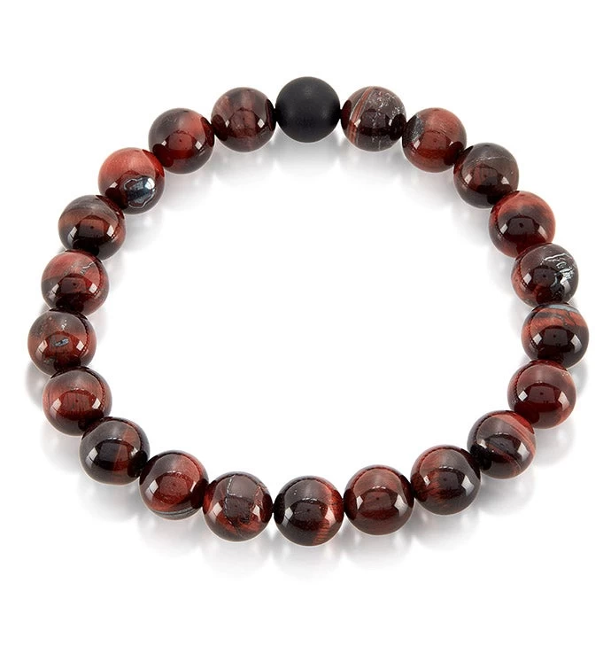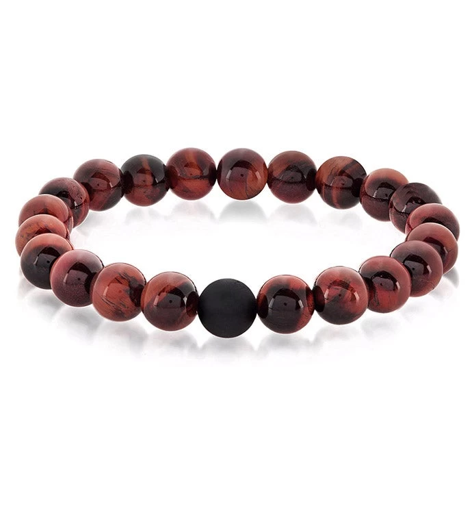 Polished Red Tiger’s Eye and Matte Onyx 10mm Stone Bead Stretch Bracelet