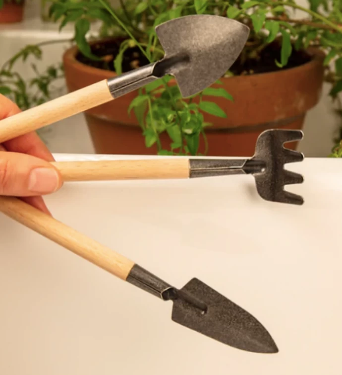 Three is the magic number and this set of compact garden tools. Perfect for indoor and small plant gardening, they take up no space at all and their stonewash finish and beechwood handles add an elegant look and feel.