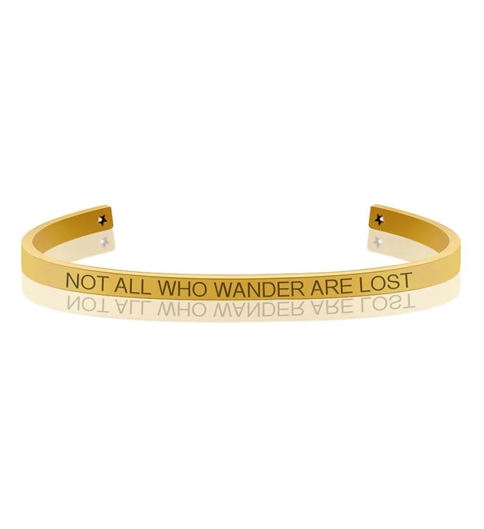 Style your hand with beautiful stainless steel stackable cuff bangles. The bangle comes high polished, star cut out at both ends, and laser engraved with a motivational quote. Worried about the size? Don’t! Bangles can be stretched and adjusted to fit any size wrist.
