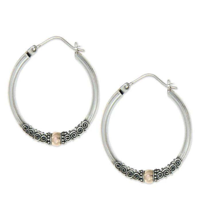 NOVICA Two Tone Moon Gold Accent Hoop Earrings