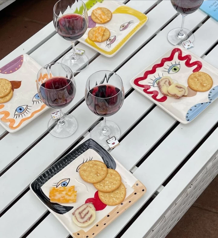 These unique and colorful stoneware appetizer plates have an original design and come with an insert card that tells a story of sisters and friends.