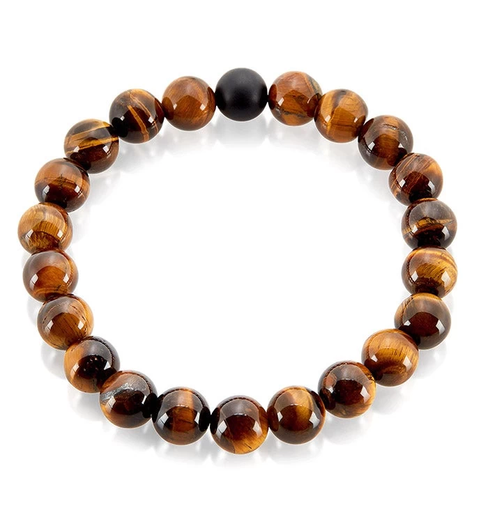 Polished Tiger’s Eye and Matte Onyx 10mm Stone Bead Stretch Bracelet