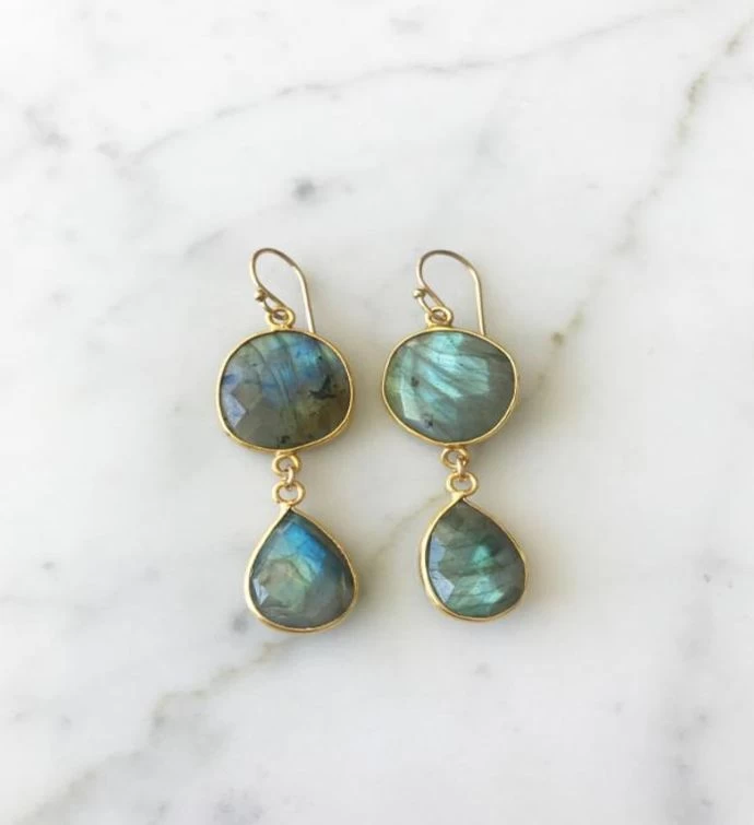 Rome Earrings Gold Labradorite / Labradorite with labradorite drops
