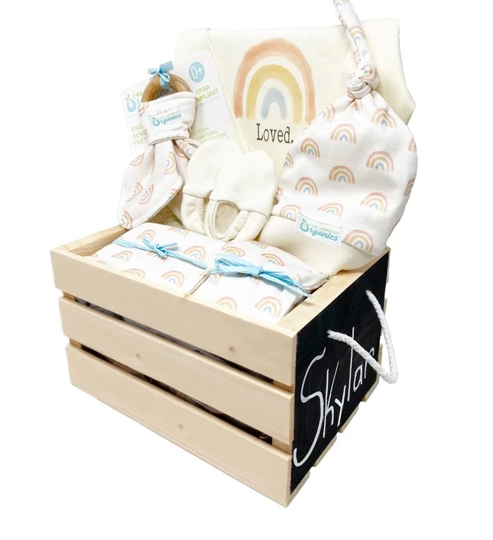 This organic starter set is perfect for any mom with a new baby. Whether for a coming home gift for a baby shower, hospital visit, or any other special moment, spoil them upon their return!