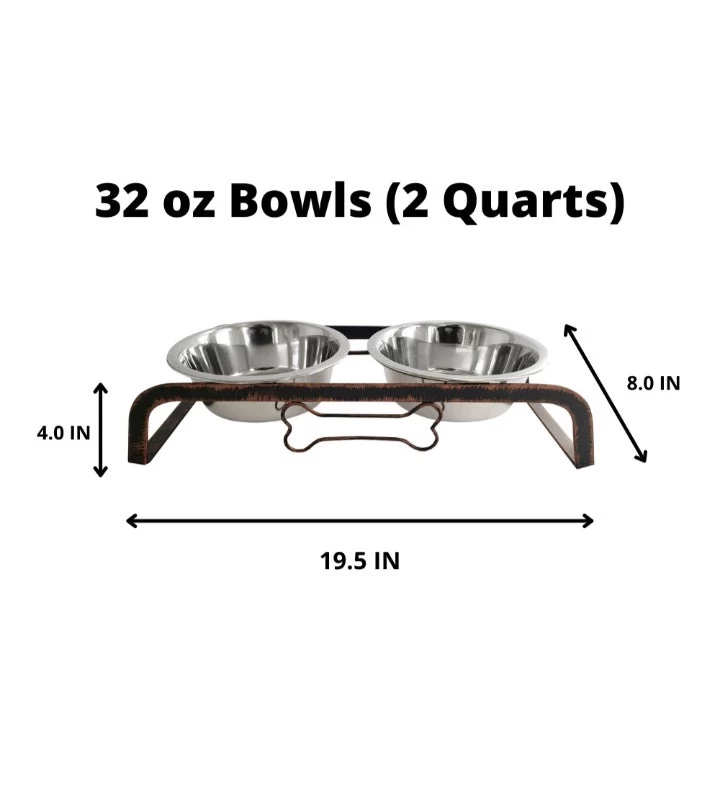 Rustic Elevated Dog Bone Feeder with 2 Stainless Steel Bowls – 2 Quarts